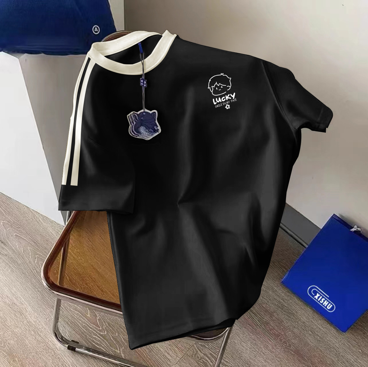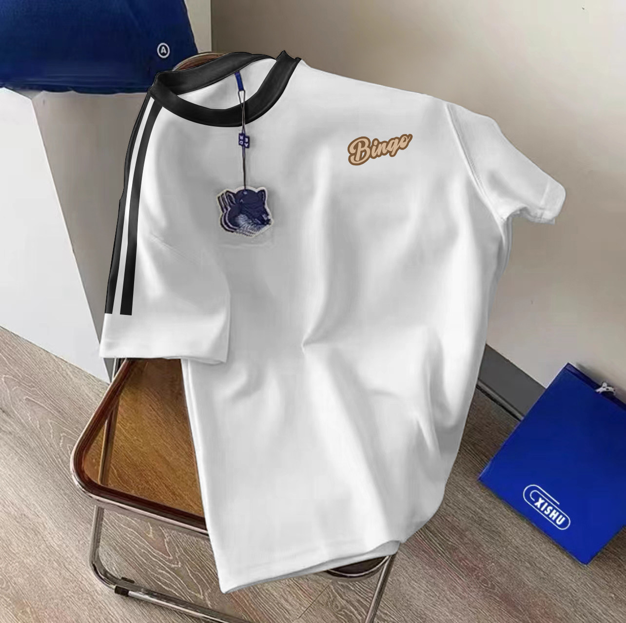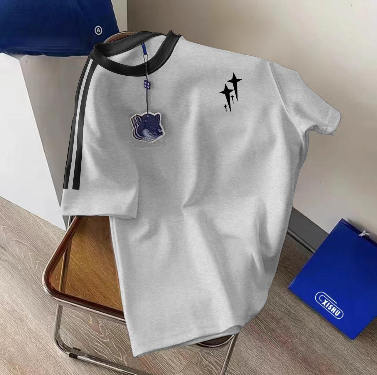 复古潮牌高街重磅纯棉情侣半袖 美式 体恤上衣 t恤男夏季 三条杆短袖