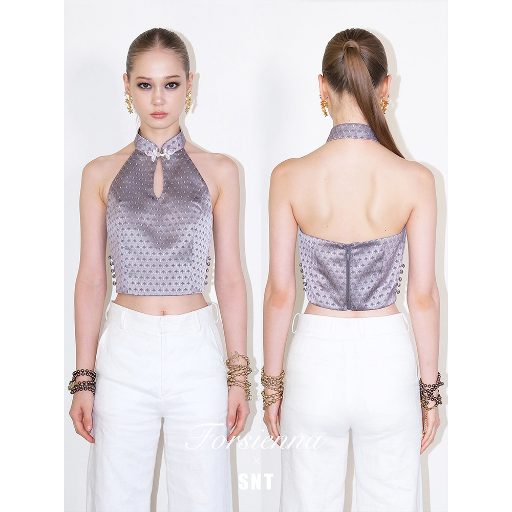 挖肩挂脖盘扣上衣 银丝提花中式 SNT 华籍美人