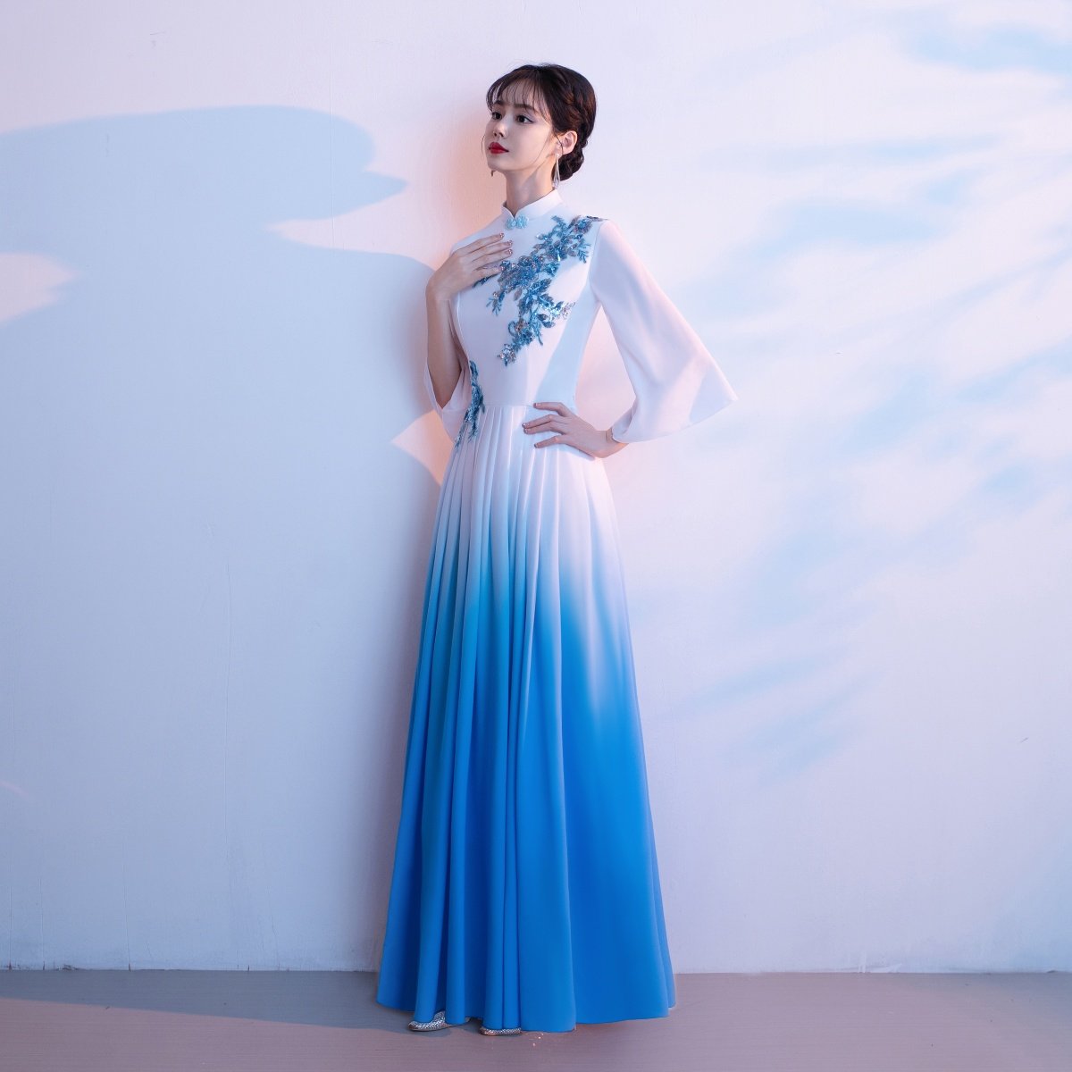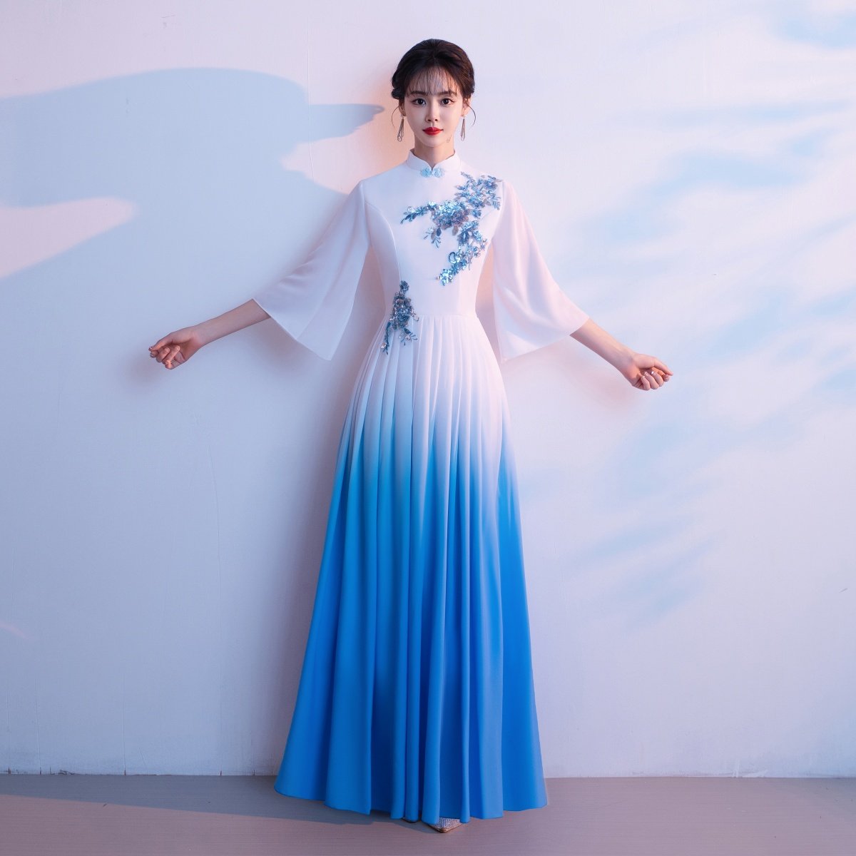 大合唱团演出服女长裙成人古筝演奏琵琶二胡表演服中国风艺考礼服