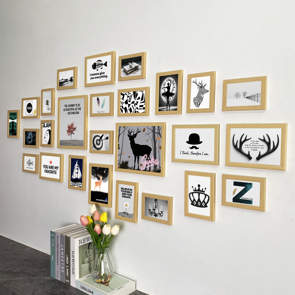 饰板背景墙店铺宣传栏打卡留言板定制水松图钉板 家用装 Brandland 贝来云极木纹框碎花软木板照片墙ins风挂式