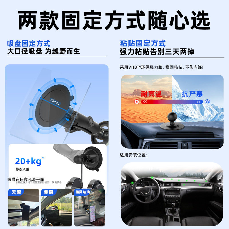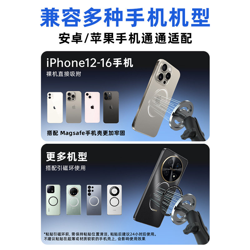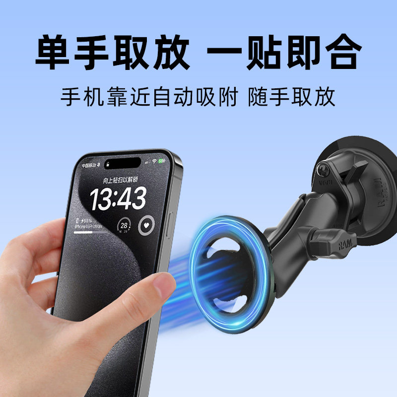 RAM车载磁吸手机支架 真空吸附越野级吸盘 Magsafe磁吸拍摄导航架