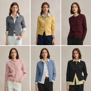 绞花毛衣圆领针织开衫 POLOWALK女式 新品 2026春季 红色毛衣女 针织衫