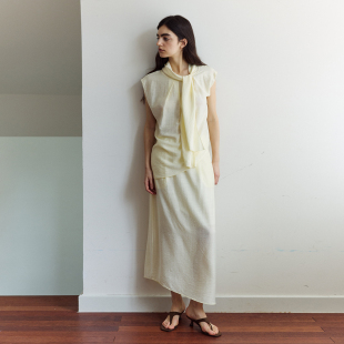 上衣女压褶斜摆显瘦半身裙套装 NON 衬衫 系带气质无袖 RESTRAIN法式