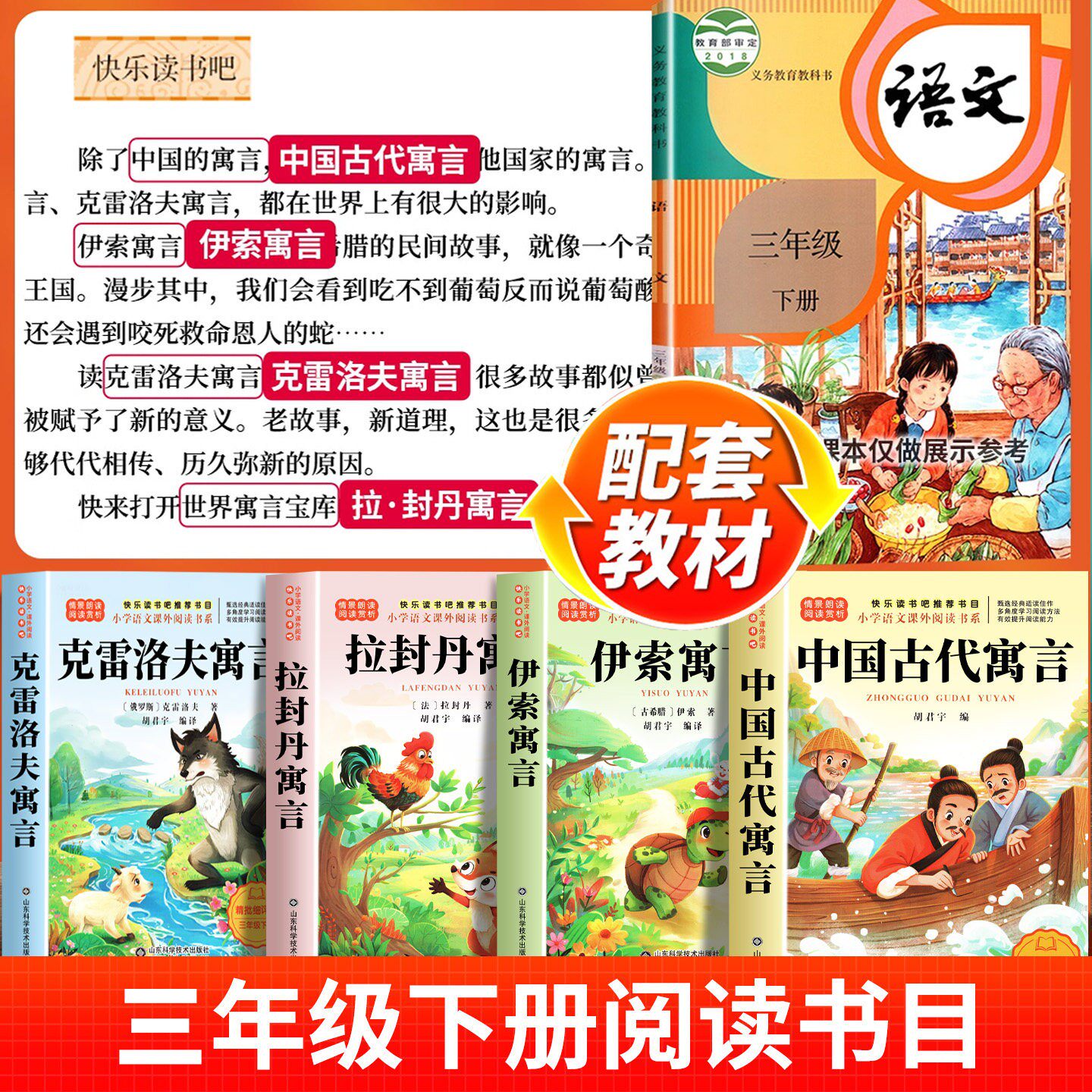 书目小学生阅读书籍老师推荐 经典 课外书快乐读书吧全套4册中国古代寓言故事克雷洛夫拉封丹寓言全集正版 伊索寓言三年级下册必读