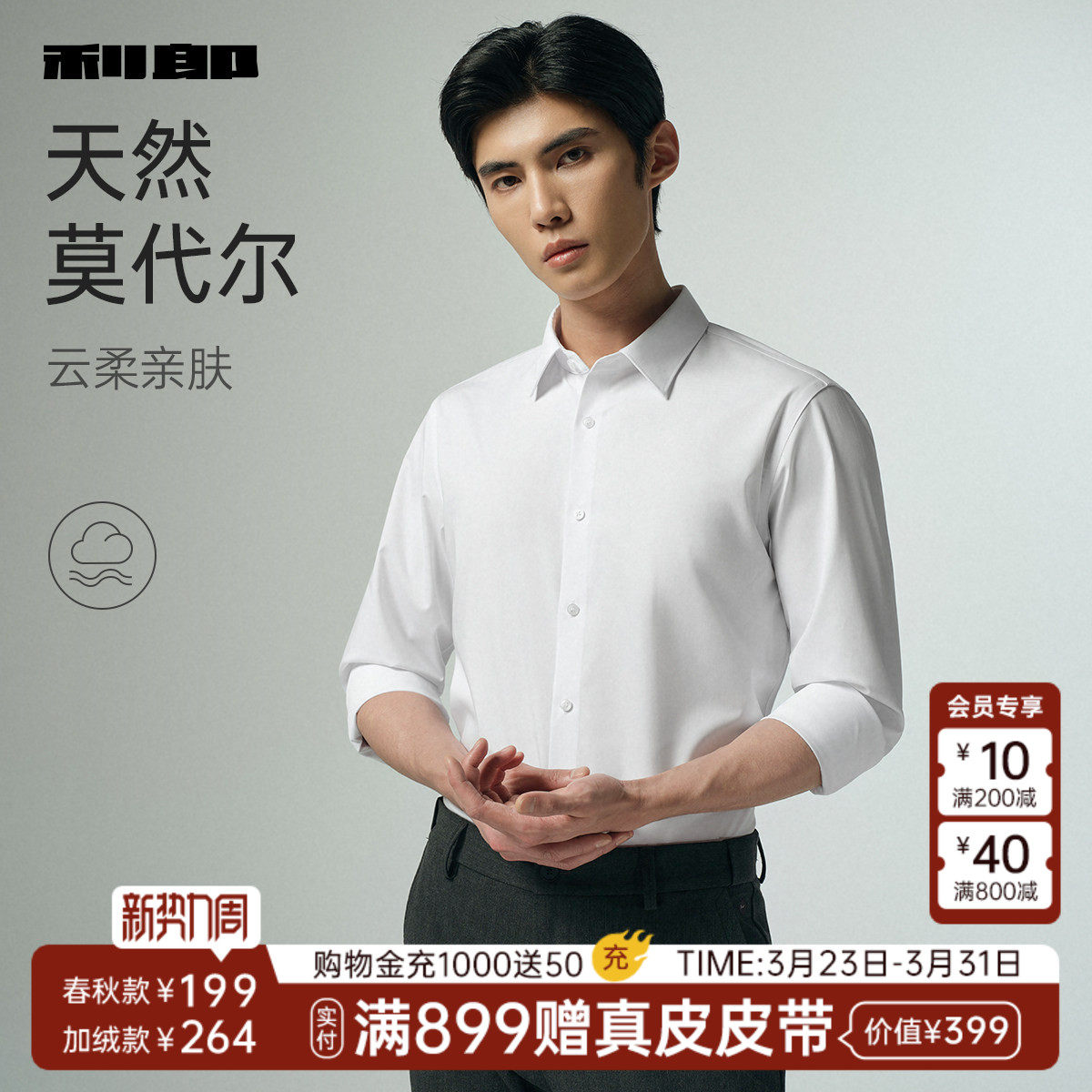 衬衫 男士 春秋款 结婚西装 利郎官方长袖 商务男装 白衬衣男款 云柔