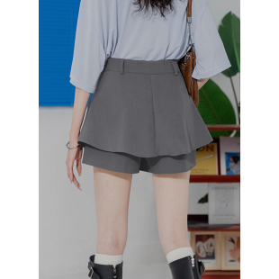 宽松百搭休闲裤 女设计感拼接荷叶边A字半身裙裤 阔腿短裤 高腰西装