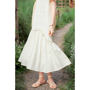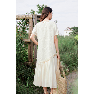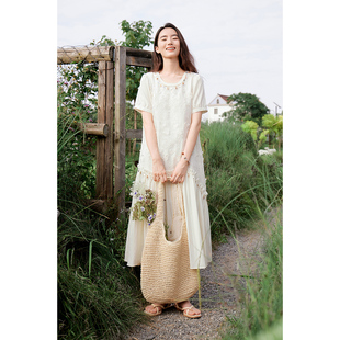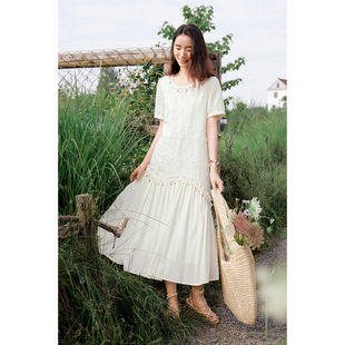 时尚 飞鸟和新酒短袖 中长款 新款 女裙 拼接蕾丝连衣裙女2025夏季