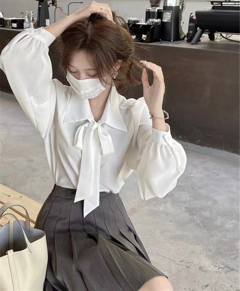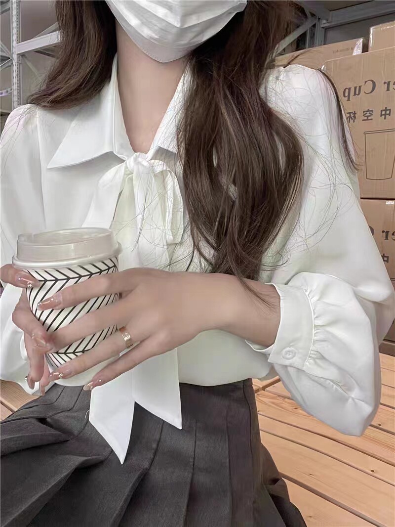 内搭气质名媛长袖 小香风领结衬衫 微胖西装 大码 上衣衬衣 女秋冬新款