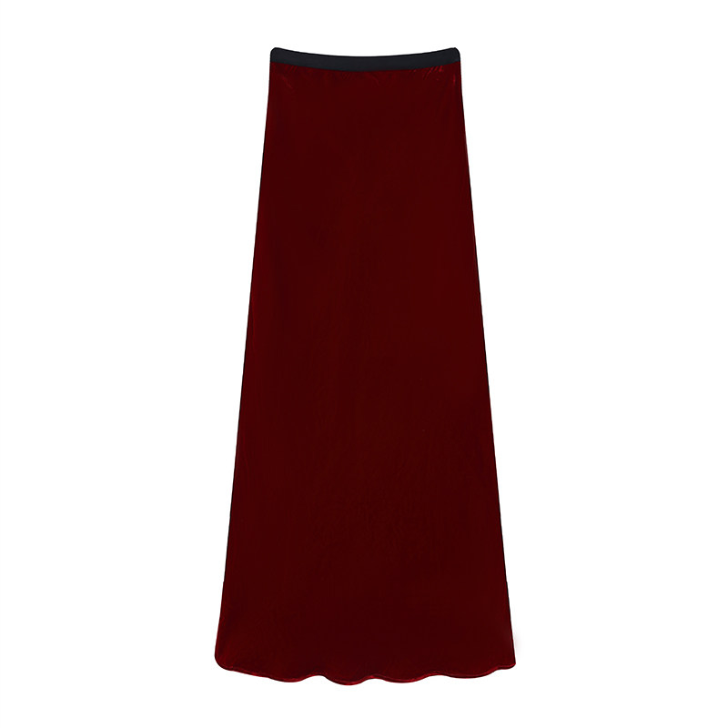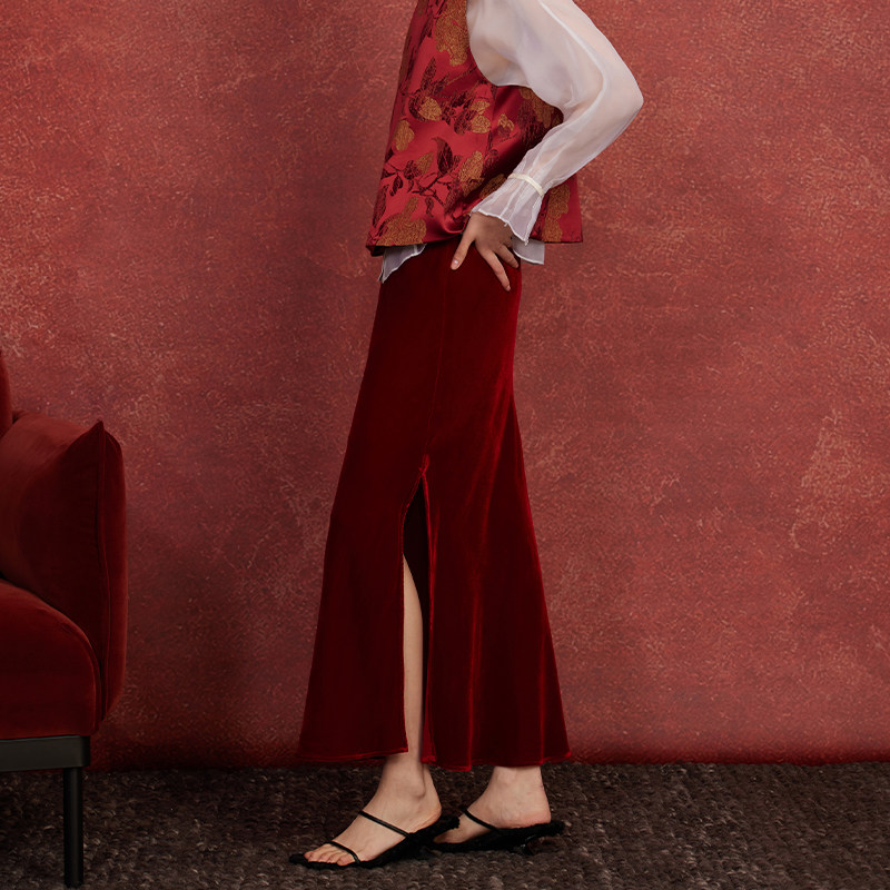 如意连云春秋新款 开叉裙子 松紧腰桑蚕丝绒半身裙女国风复古新中式