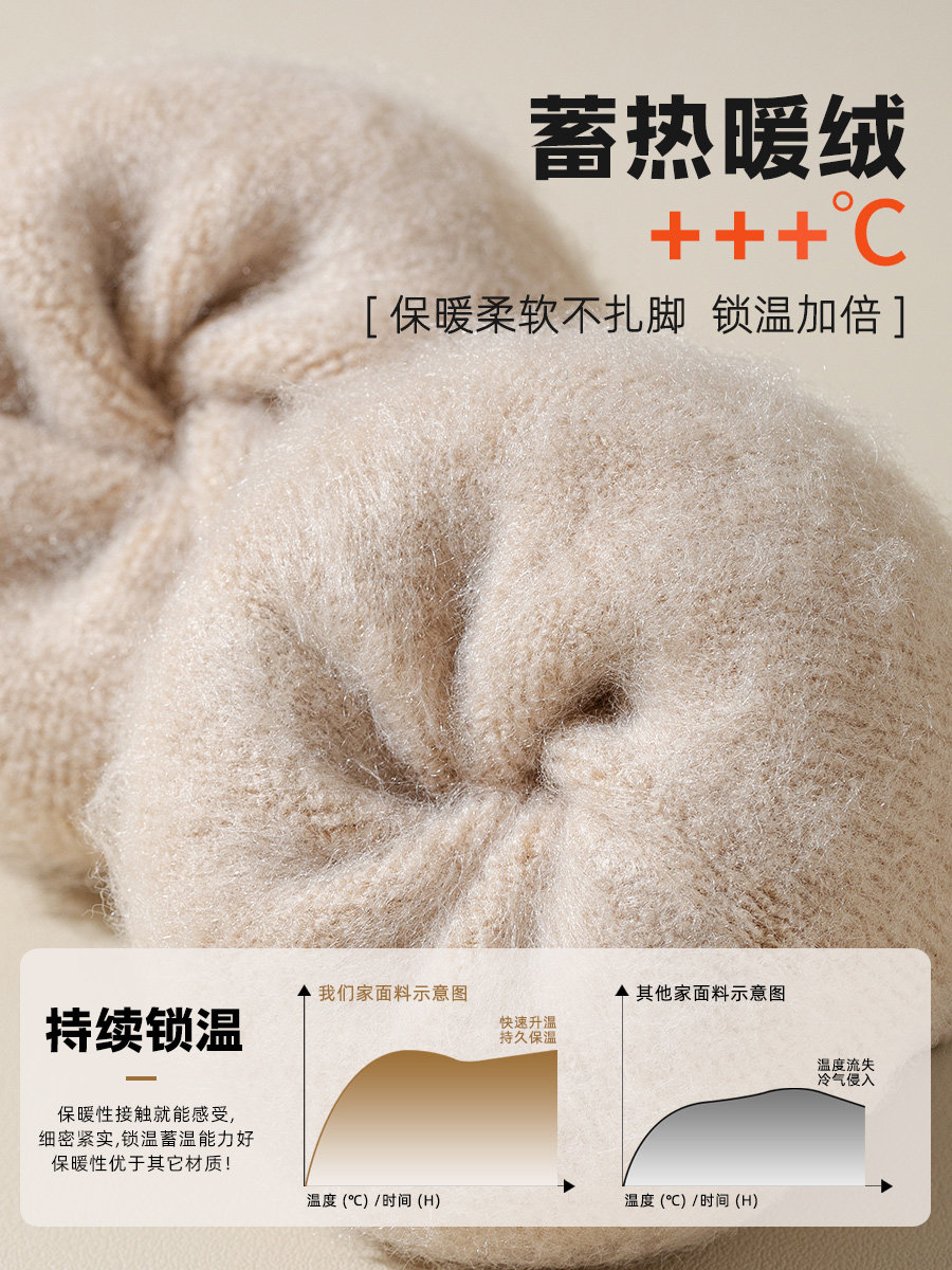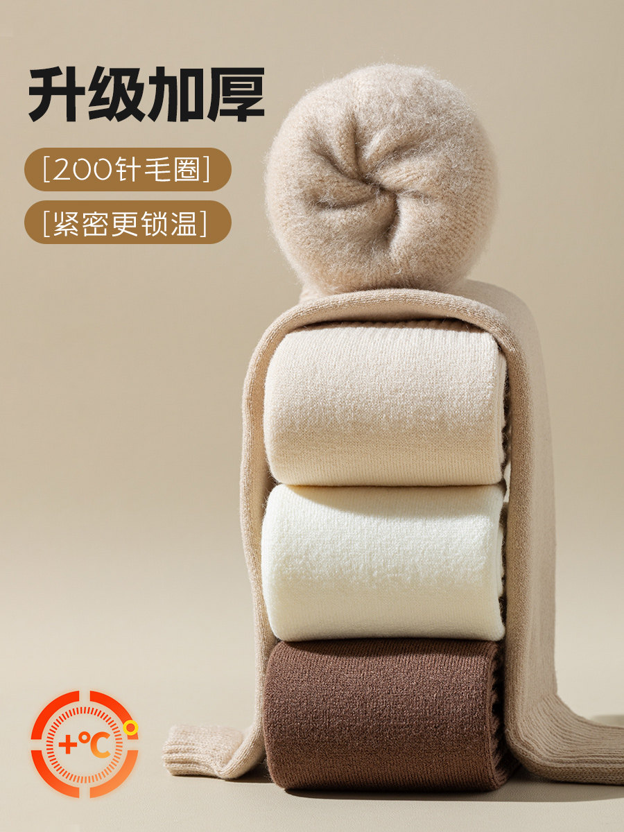 袜子女秋冬季 含羊毛棉袜保暖毛圈长筒袜 加绒加厚中筒雪地袜子女款
