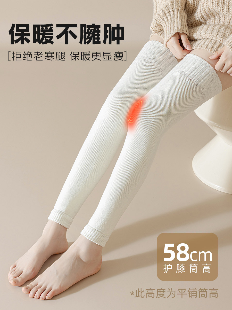 过膝袜子女长筒袜秋冬新疆棉加绒加厚小腿袜冬季 长腿纯色护膝袜套