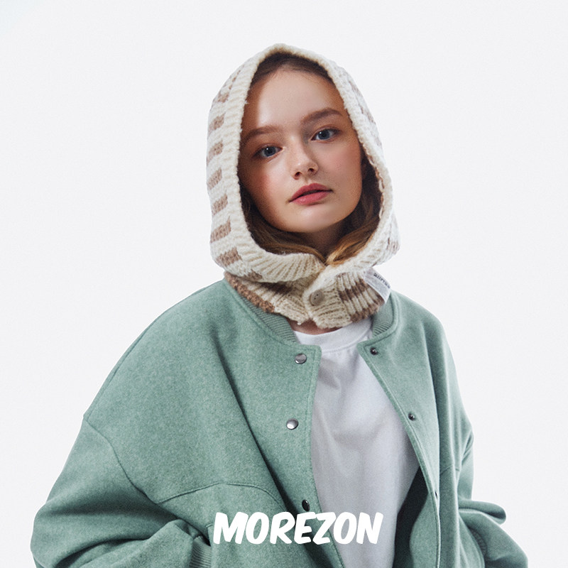 小熊帽子围脖一体男冬季 可爱冬天情侣连帽护耳骑车保暖围脖冬潮牌
