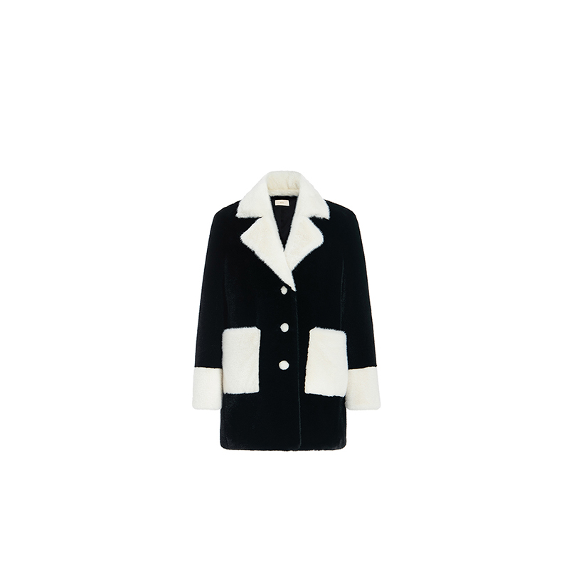 环保狐狸毛仿皮草双色定染复古翻领拼接假两件毛毛外套 雪顶摩卡