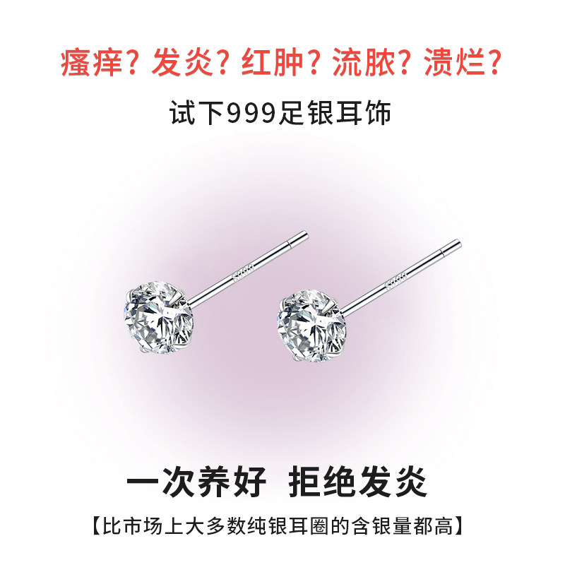 S999纯银养耳洞银耳圈耳环素圈圈圈圆圈耳钉睡觉不用摘小耳扣耳饰