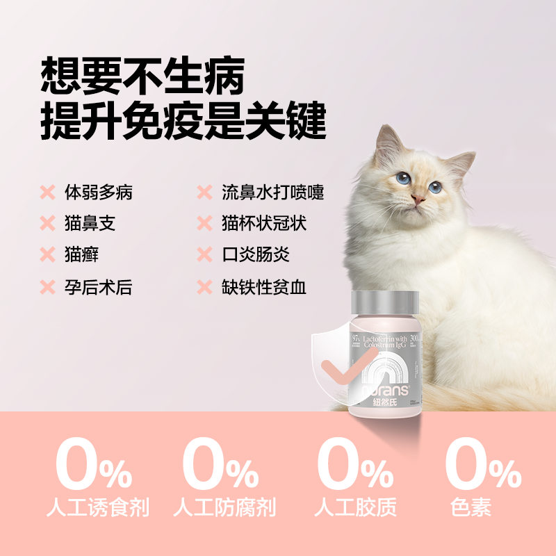 纽然氏猫咪乳铁蛋白0乳糖宠物有助猫鼻支猫癣猫传腹杯状感冒猫用