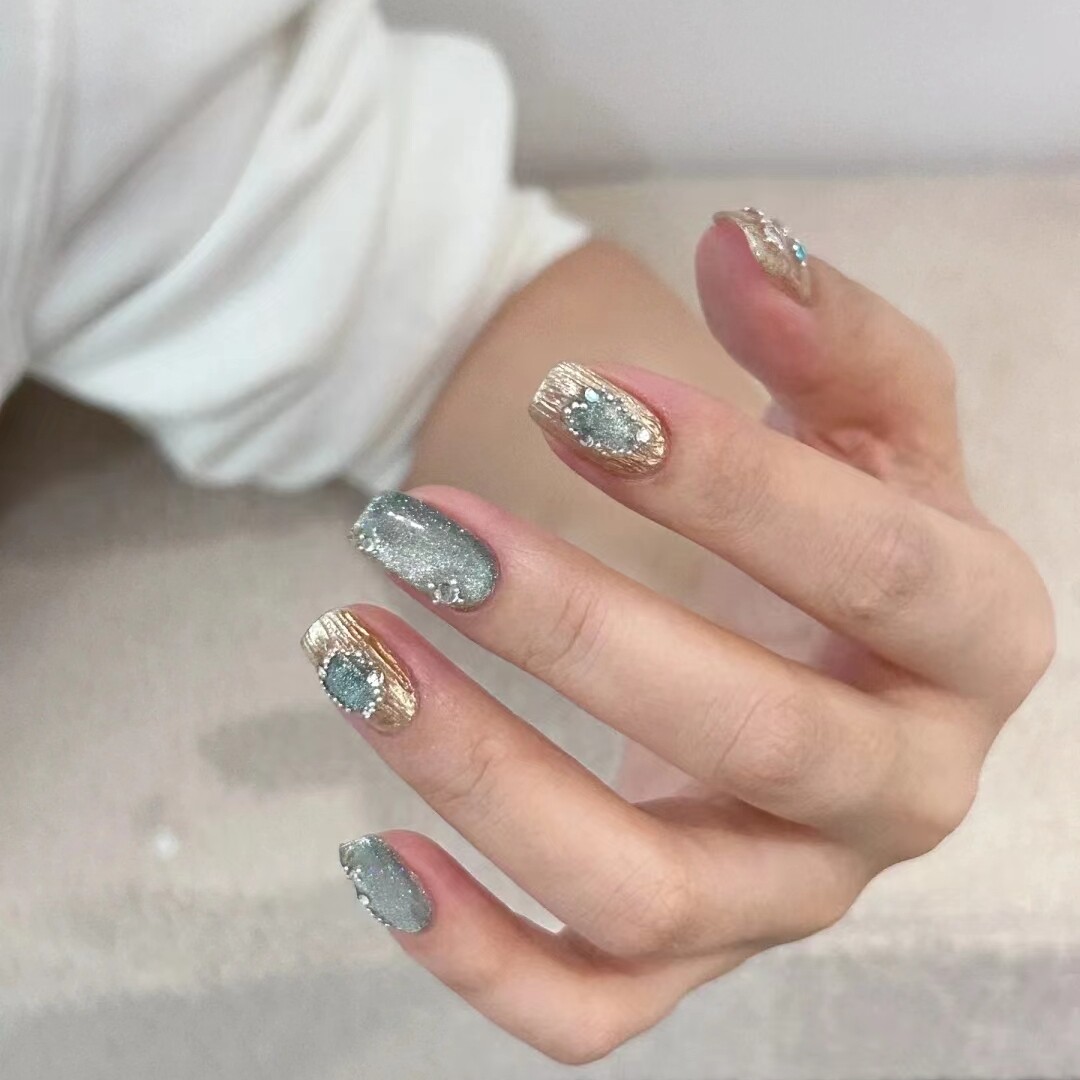 348手工定制布契拉提猫眼美甲成品贴片穿戴假指甲孕妇持久可拆卸