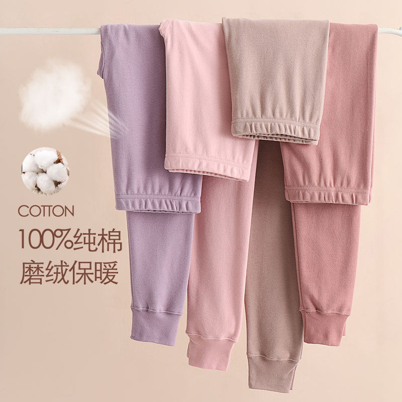 T674 单件纯棉秋冬棉毛裤 AB内衣女士磨绒基础打底保暖秋裤 高腰长裤