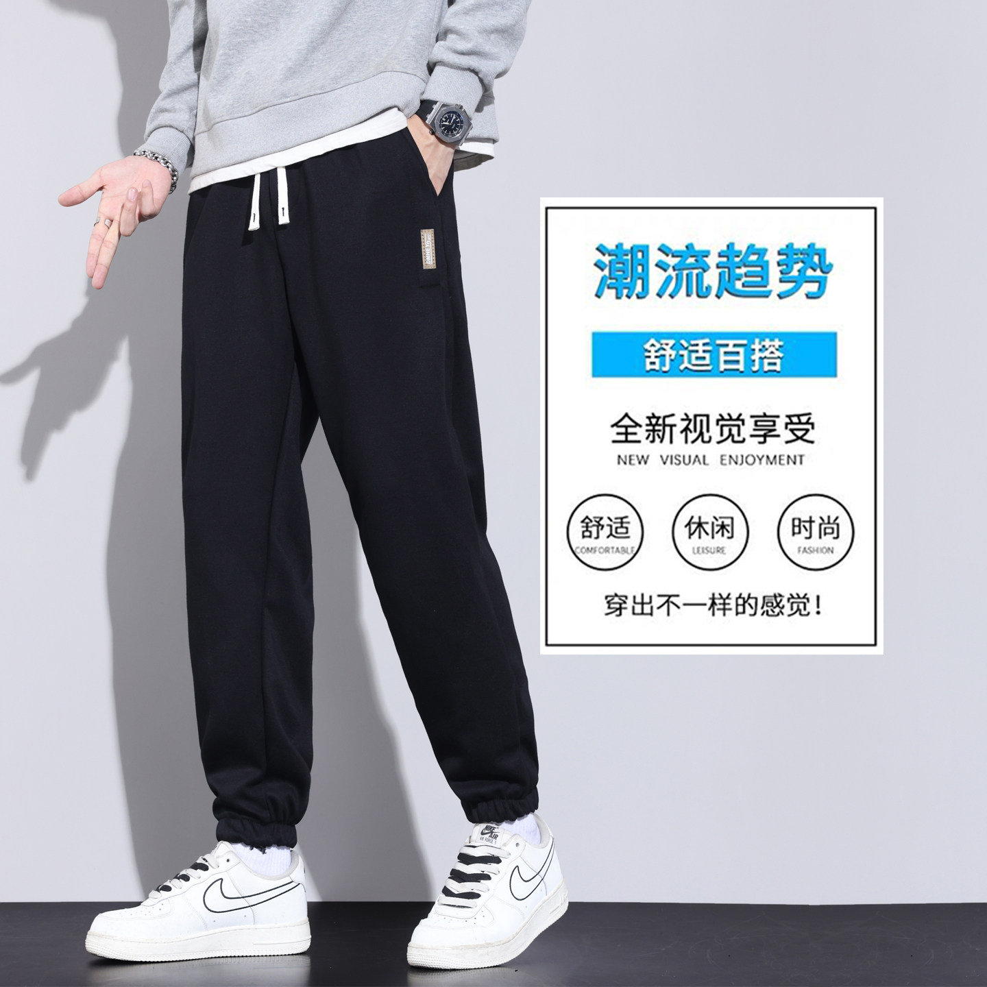 男裤 宽松大码 束脚青少年运动裤 子男夏季 休闲裤 卫裤 男春秋2026新款
