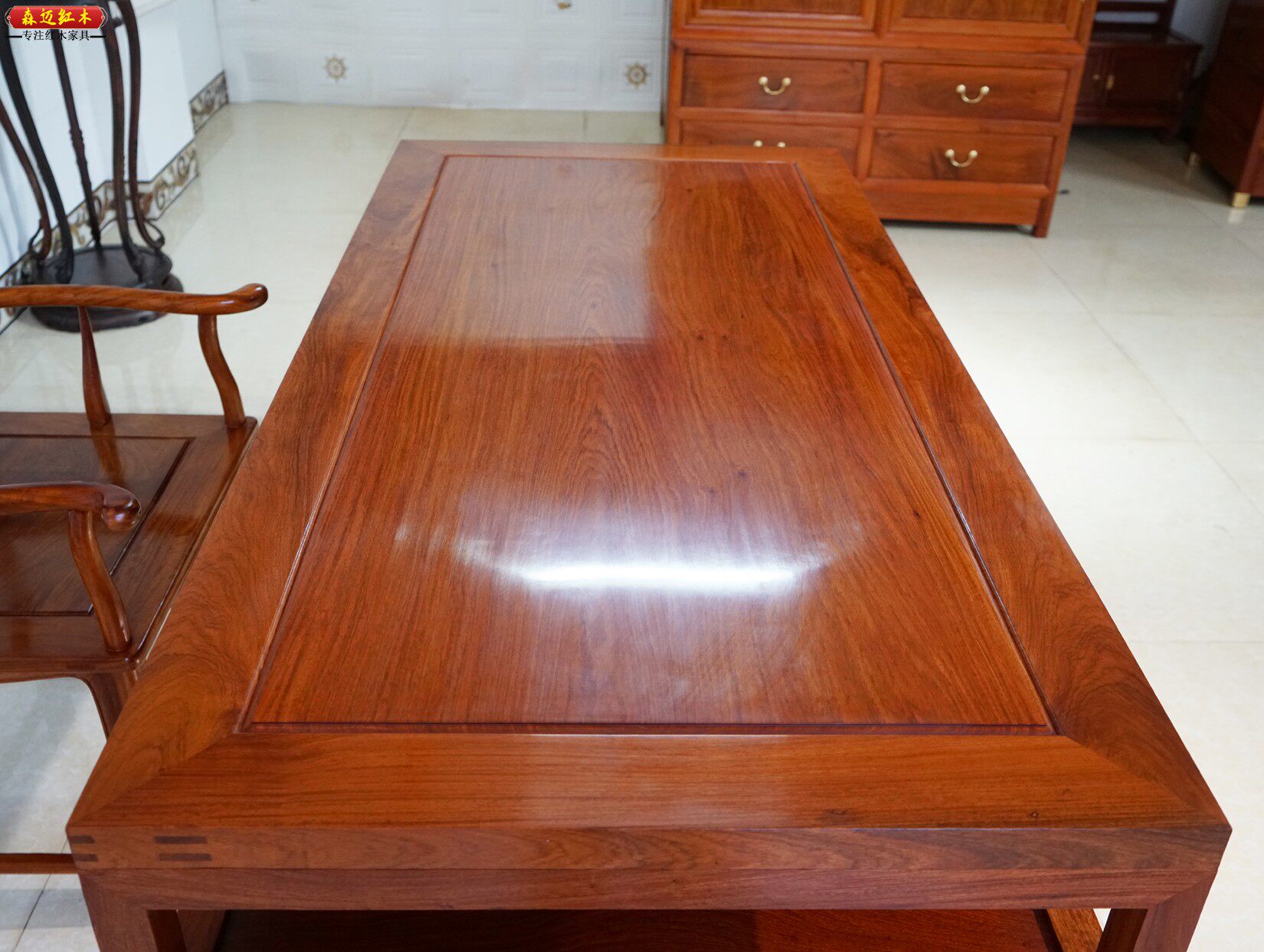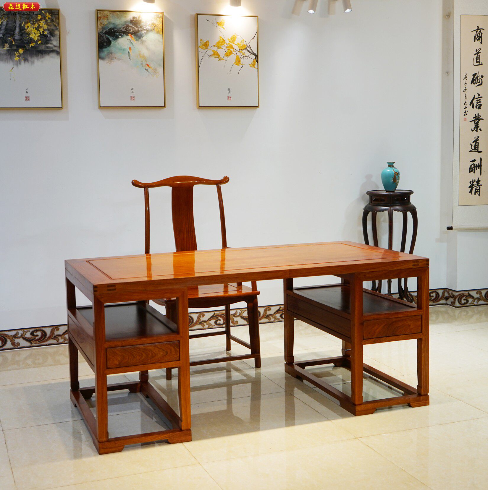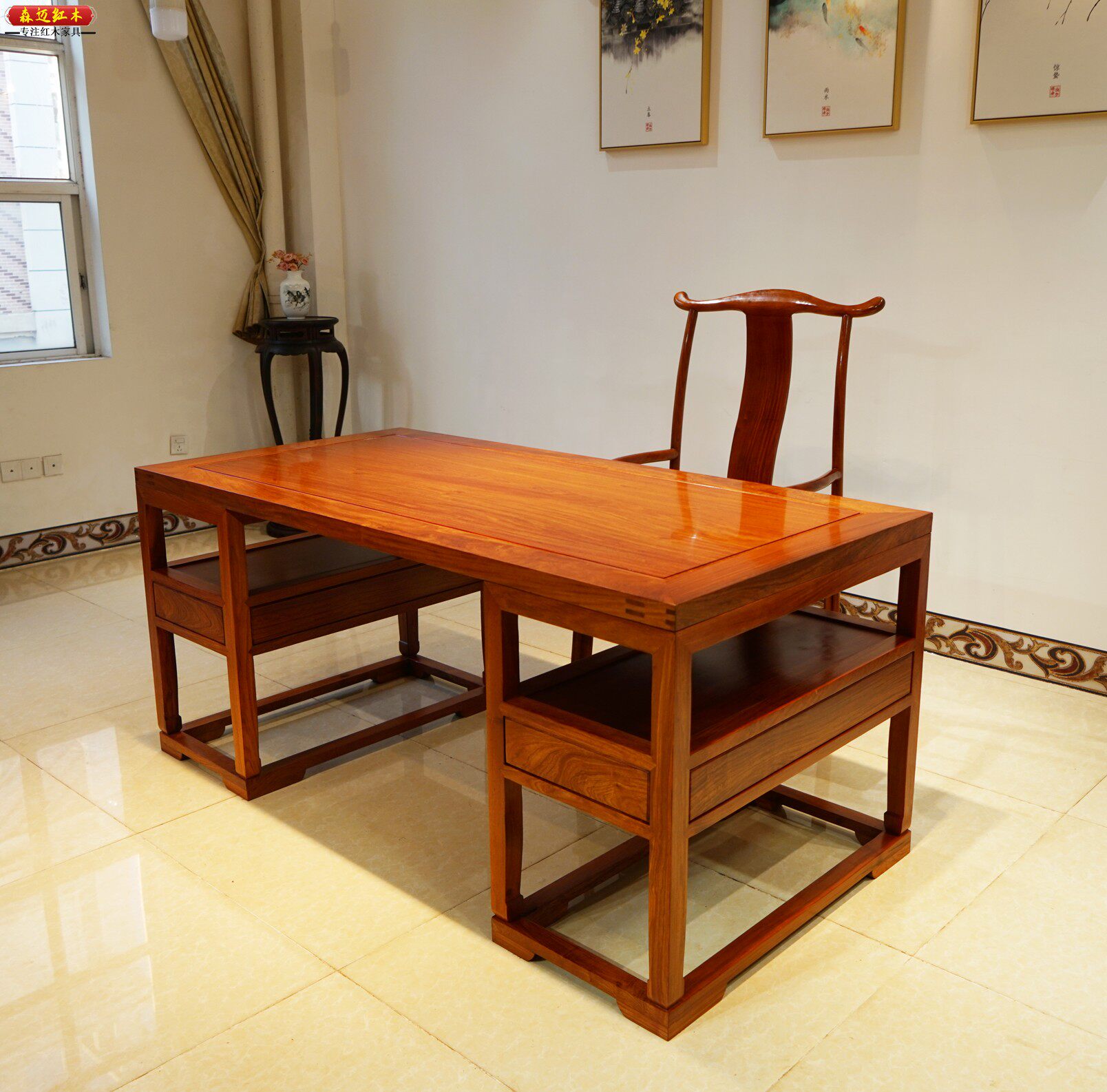 缅甸花梨木书桌中式 实木大果紫檀办公桌红木写字台家用书法画案桌