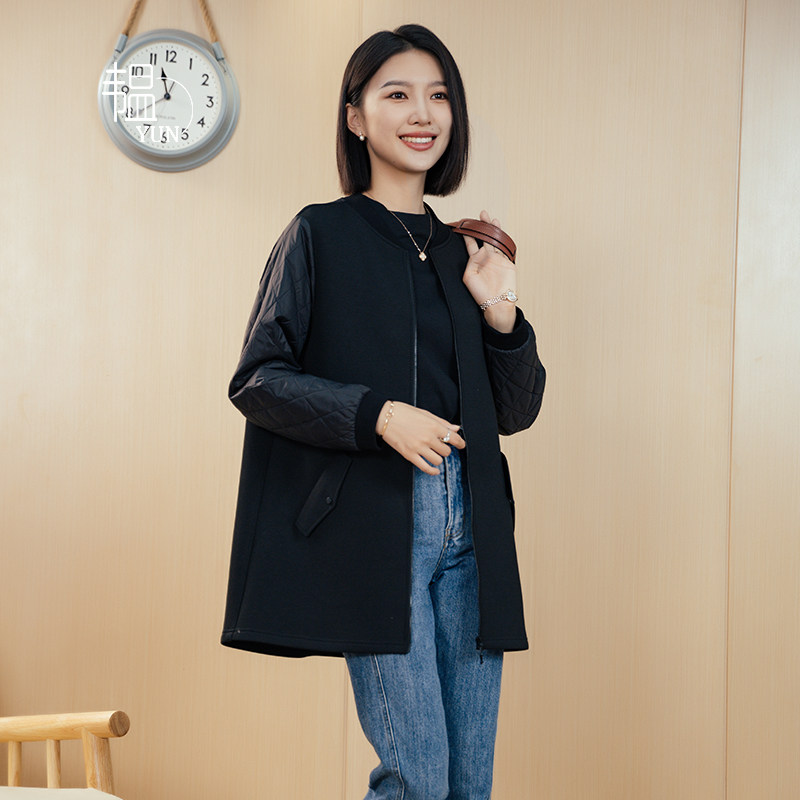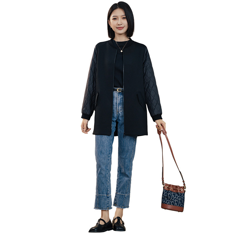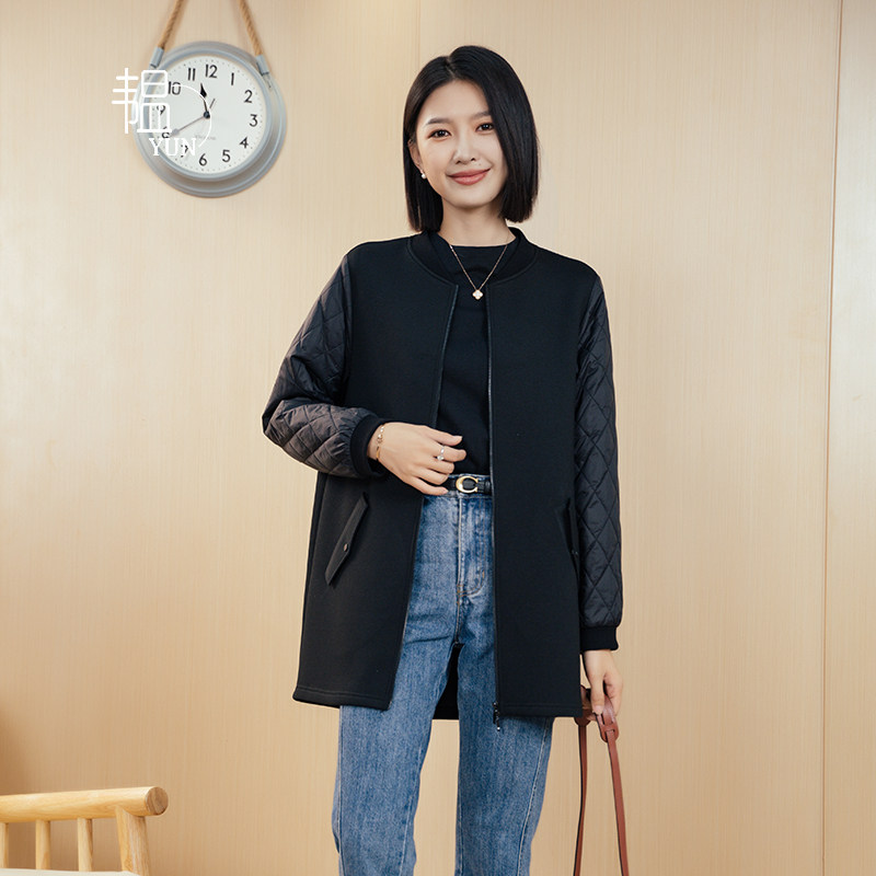 女装 韫2025秋冬新品 拉链拼接袖 韩版 风衣棒球服外套 中长款 YUN