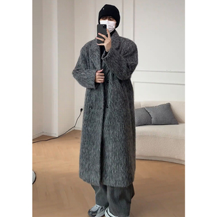 fmario 休闲宽松含羊毛呢料大衣男女 韩风夹棉加厚保暖中长款