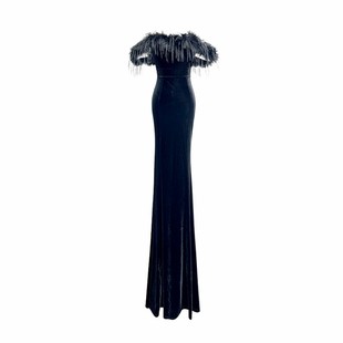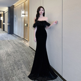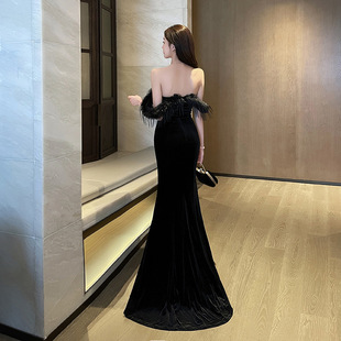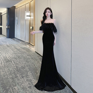 黑色抹胸名媛长裙气质车模年会性感鱼尾裙拖地晚装 露背夜场连衣裙