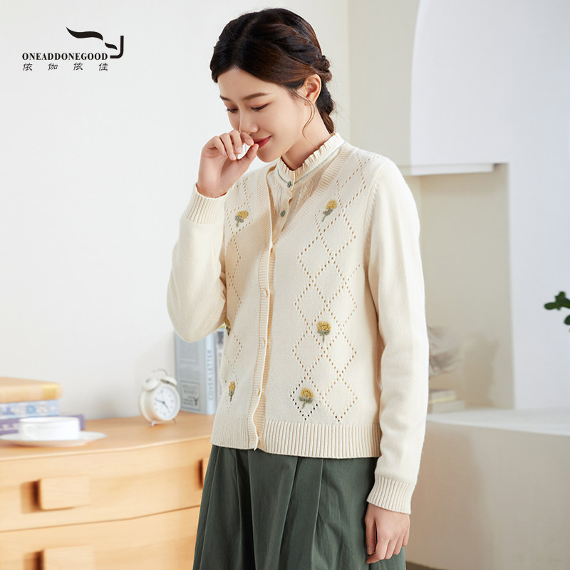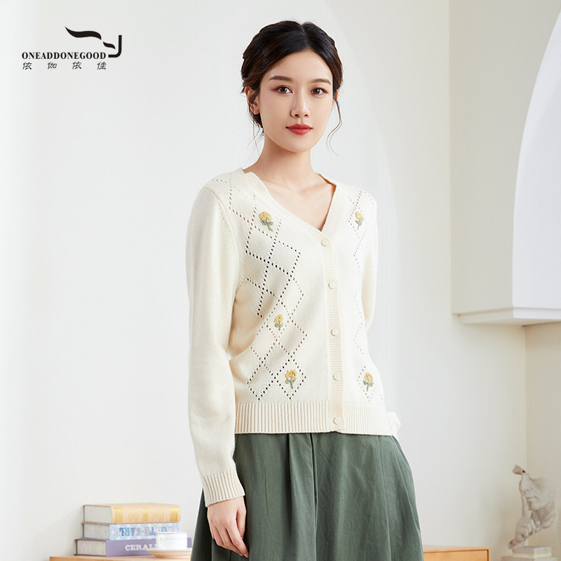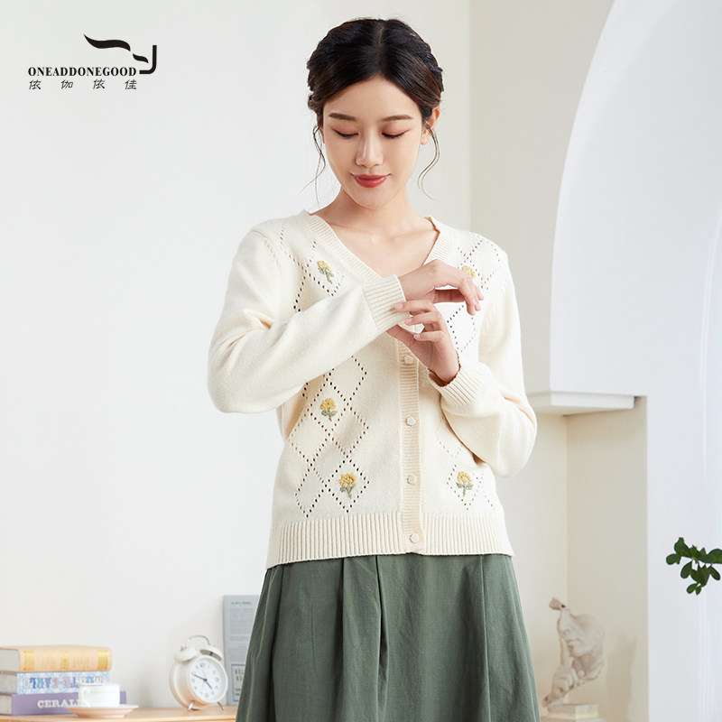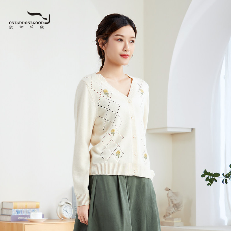 针织衫 依伽依佳2023秋季 优雅羊毛短款 印花简约开衫 女ESQS007 新款