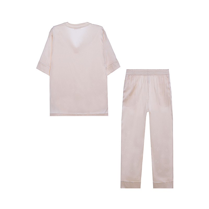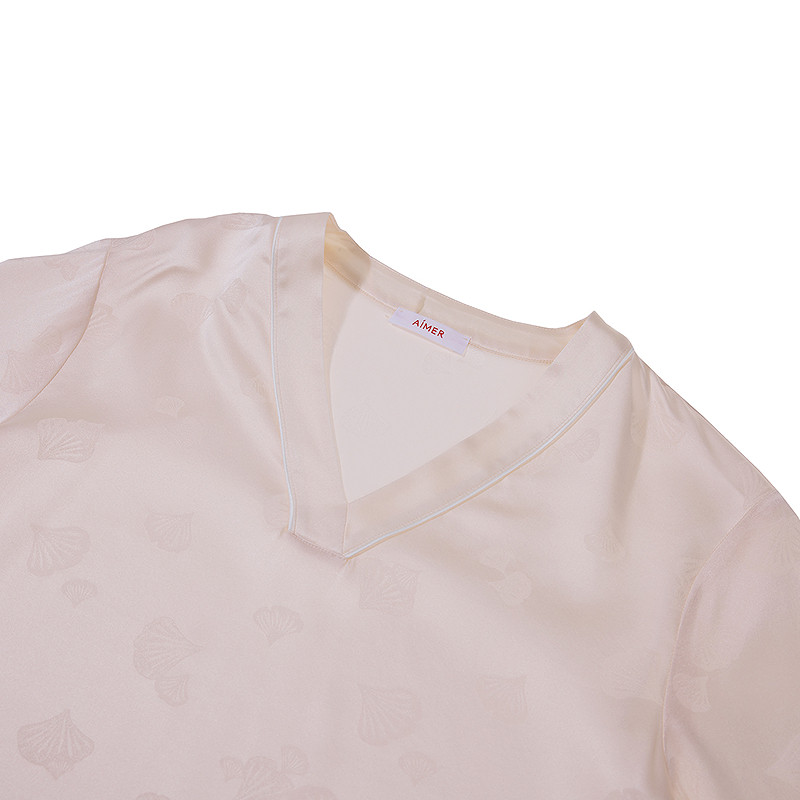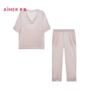 分身家居套装 爱慕25夏丝润睡衣女含桑蚕丝抗起球舒适短袖 长裤