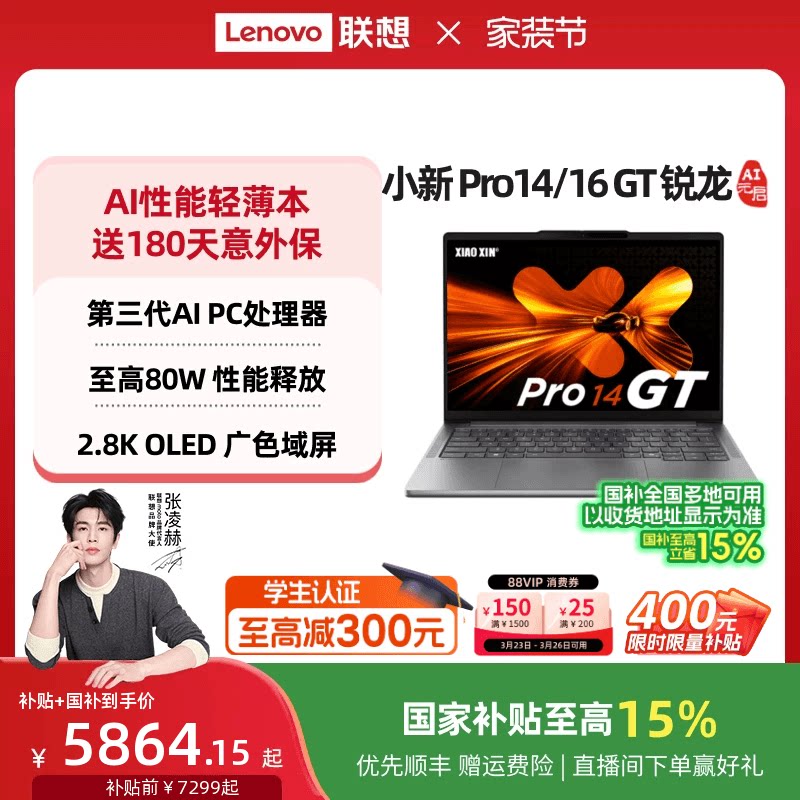 国补 联想小新Pro14 16英寸游戏轻薄笔记本电脑学习轻薄本 88券 官方旗舰店 锐龙标压14 百补 2025 Pro16