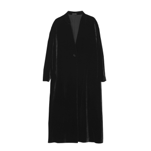JUZININE原创设计真丝绒立领一粒扣风衣桑蚕丝极简V领长大衣外套