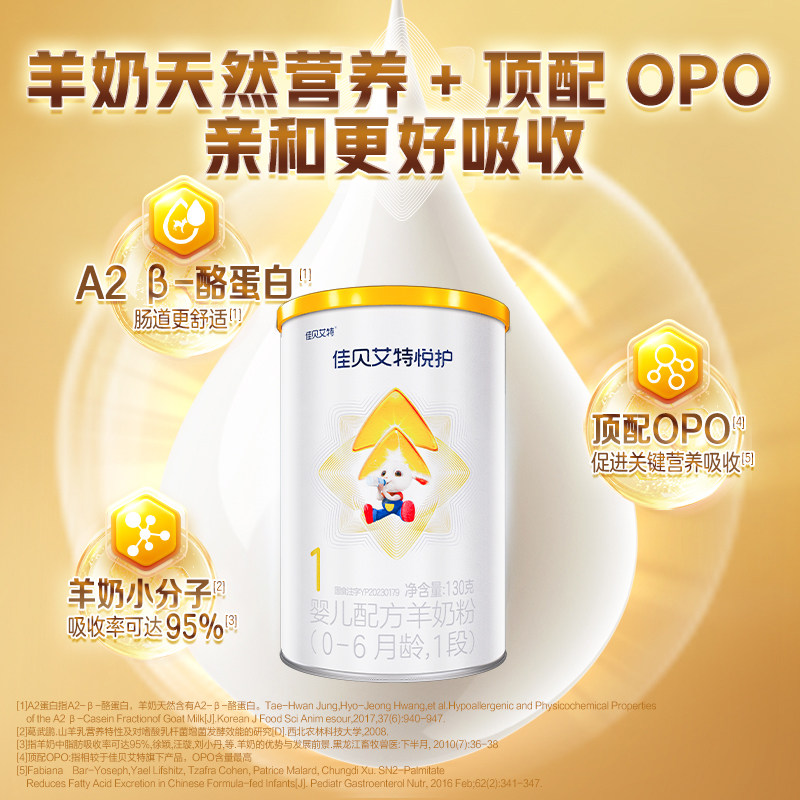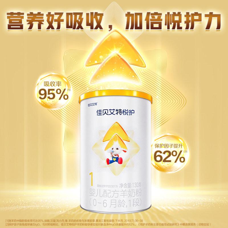 唐嫣推荐 6个月悦护力130g 佳贝艾特婴幼儿羊奶粉低敏悦护1段0