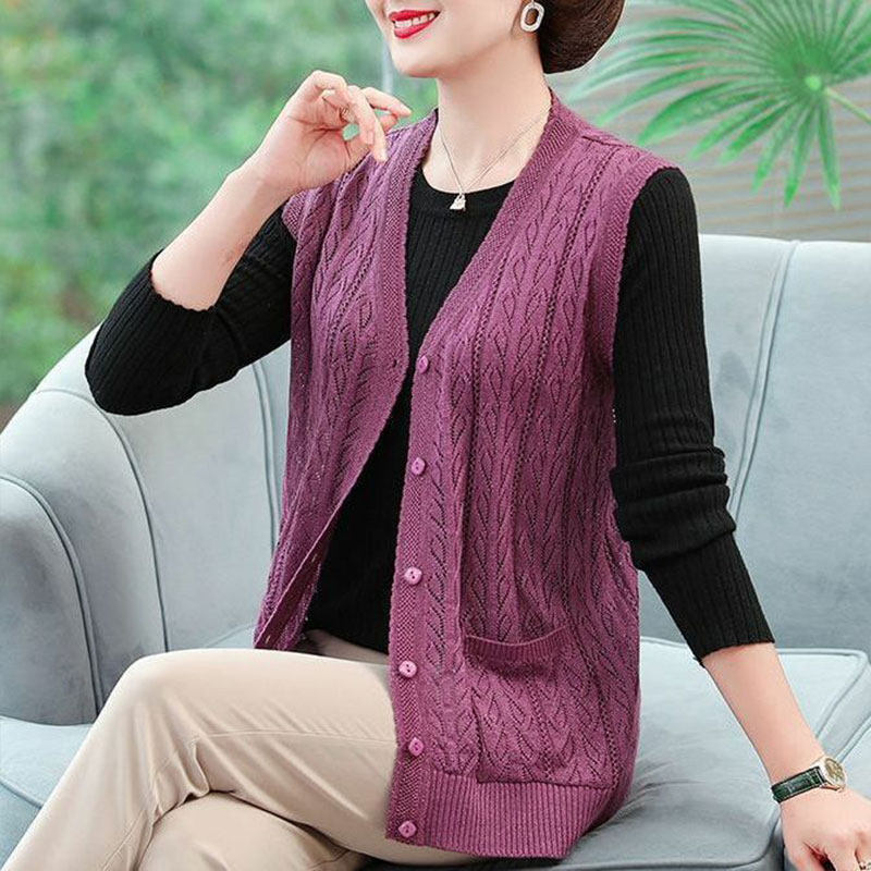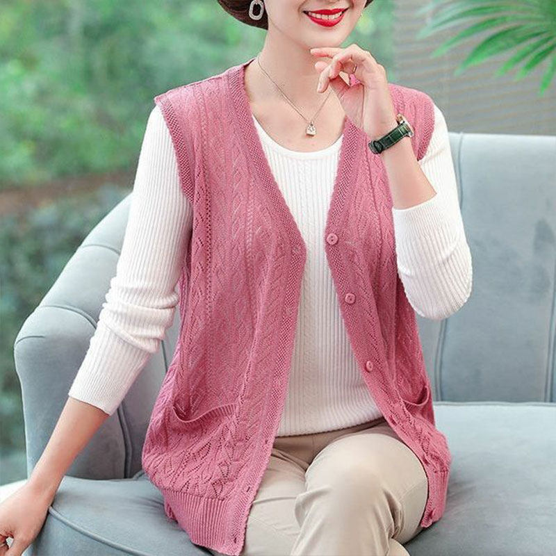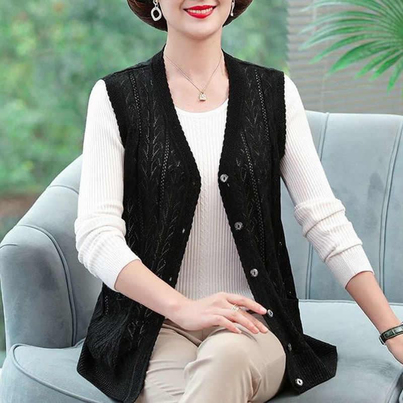 针织外套镂空马夹开衫 春夏新款 中老年妈妈背心女百搭宽松坎肩薄款