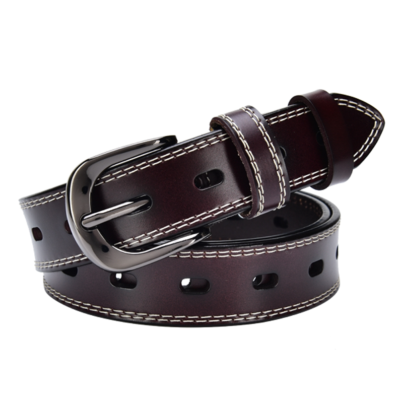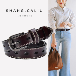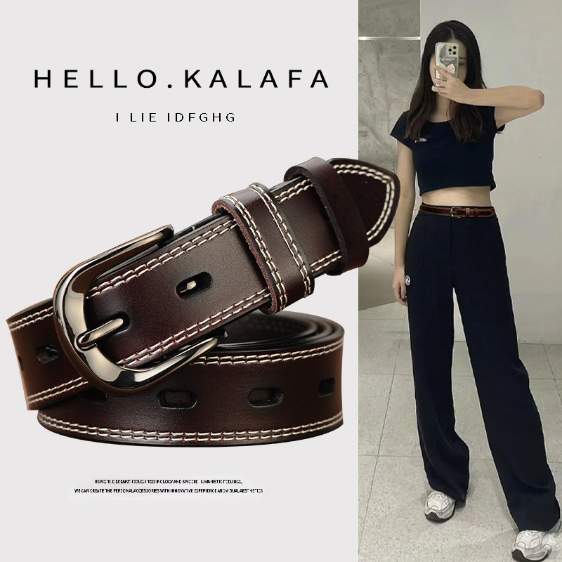 时尚 咖色裤 装 皮带女款 带 饰配牛仔裤 镂空免打孔真皮腰带女2026新款