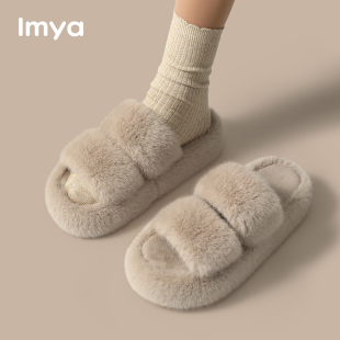 女外穿春季 女冬季 新款 潮流耐磨棉拖鞋 家居ins 毛绒时尚 厚底毛毛鞋