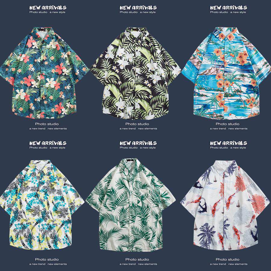 Blouse Tops men Loose 衬衫 women shirts沙滩短袖 男女 Beachwear