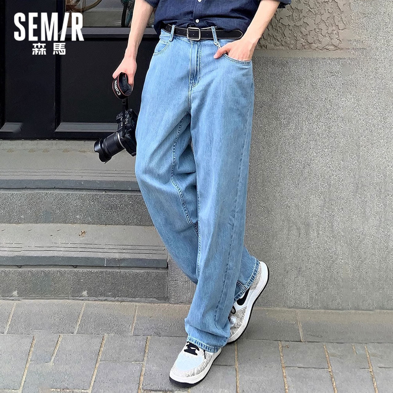 商场同款 复古宽松直筒裤 森马牛仔裤 新款 纯棉 男2025夏季 森柔牛仔