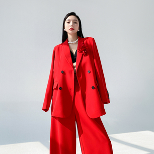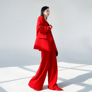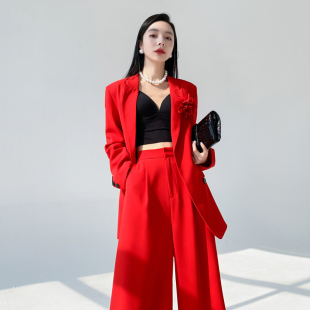 二件套女春秋 阔腿裤 AKSAYA高级感时髦洋气大红色休闲西装 外套套装