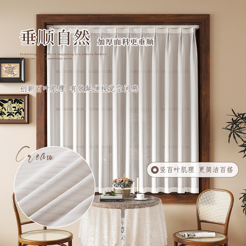 法式 窗帘纱帘透光不透人卧室客厅小窗户遮阳飘窗遮挡滑轨2026新款
