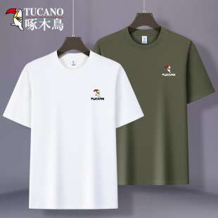 百搭半袖 白色圆领休闲宽松打底衫 体恤 t恤男夏季 啄木鸟纯棉短袖