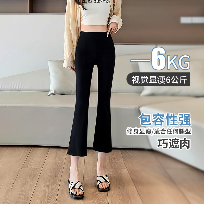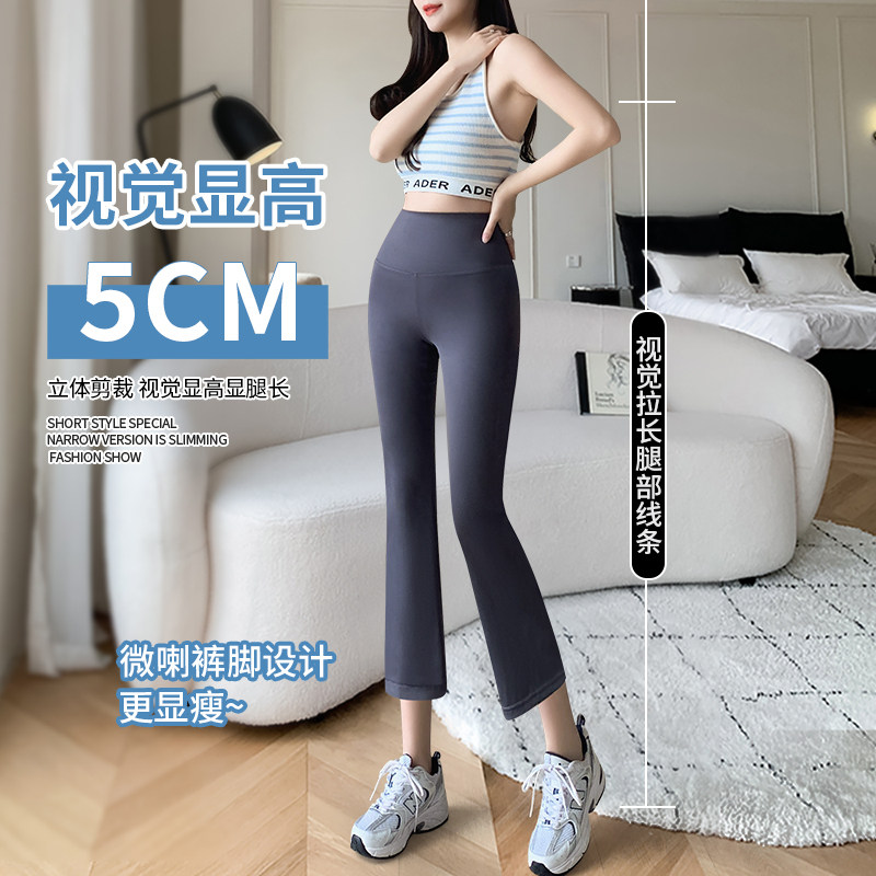 145 高腰打底健美瑜伽喇叭裤 140cm八分小个子微喇鲨鱼裤 女外穿薄款