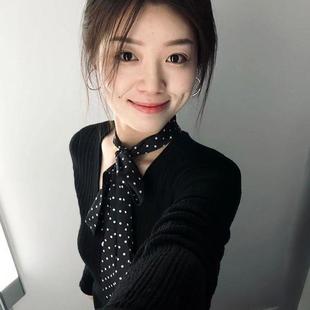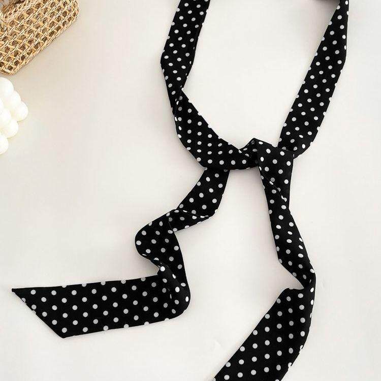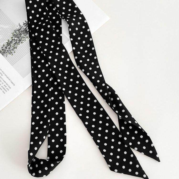 搭配衬衫 百搭时尚 新款 黑色波点丝巾轻奢高档女系脖发带秋季