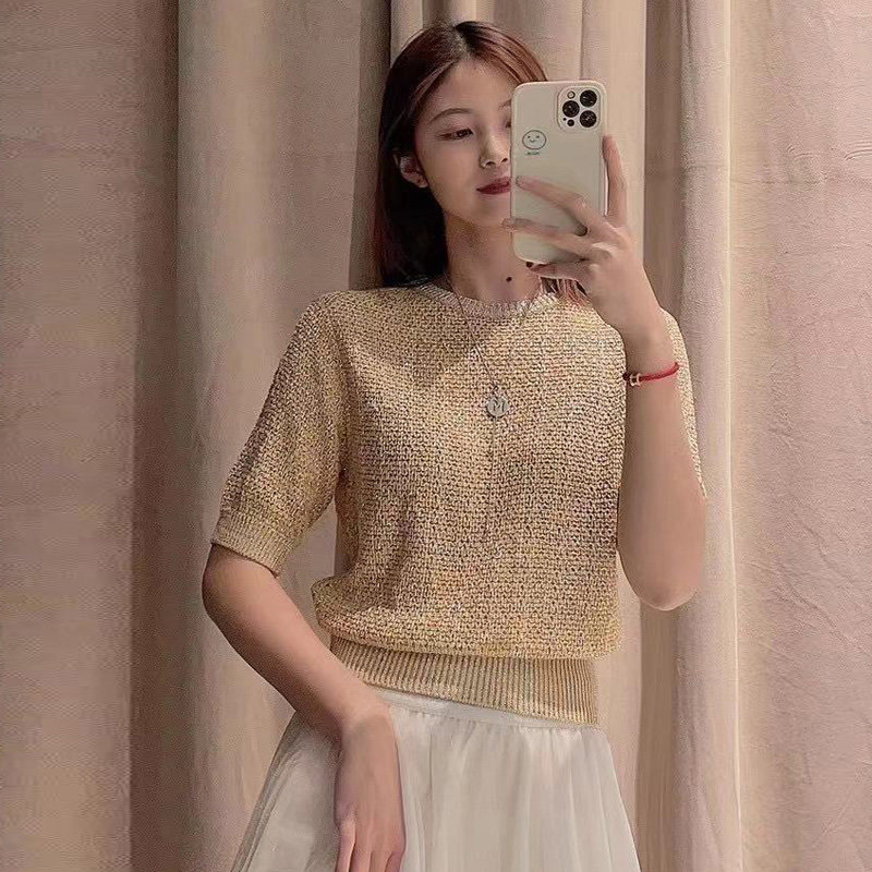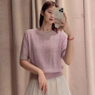 短袖 正品 缕空宽松冰丝针织衫 2025夏新款 T恤女士上衣 哥家新女装