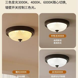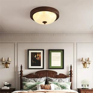 美式 玻璃吸顶卧室家用复古阳台过道灯中古风大气圆形主卧房间灯具