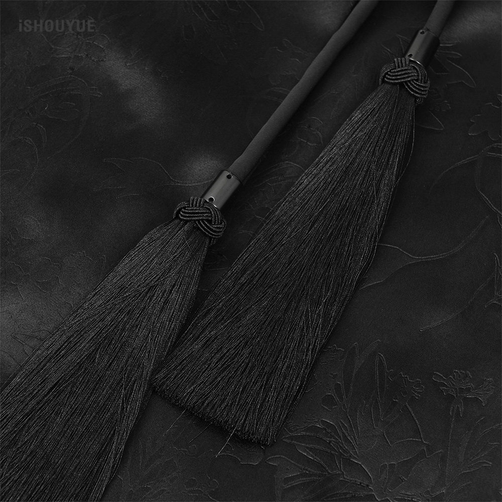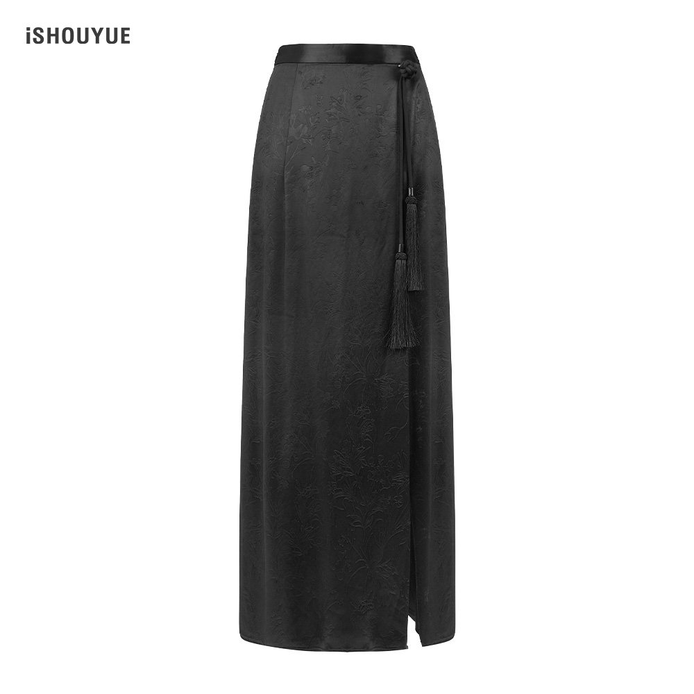 黑色半身裙 墨香疏影醋酸流苏侧开叉半裙气质新中式 iSHOUYUE