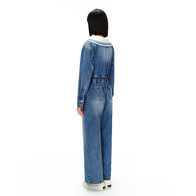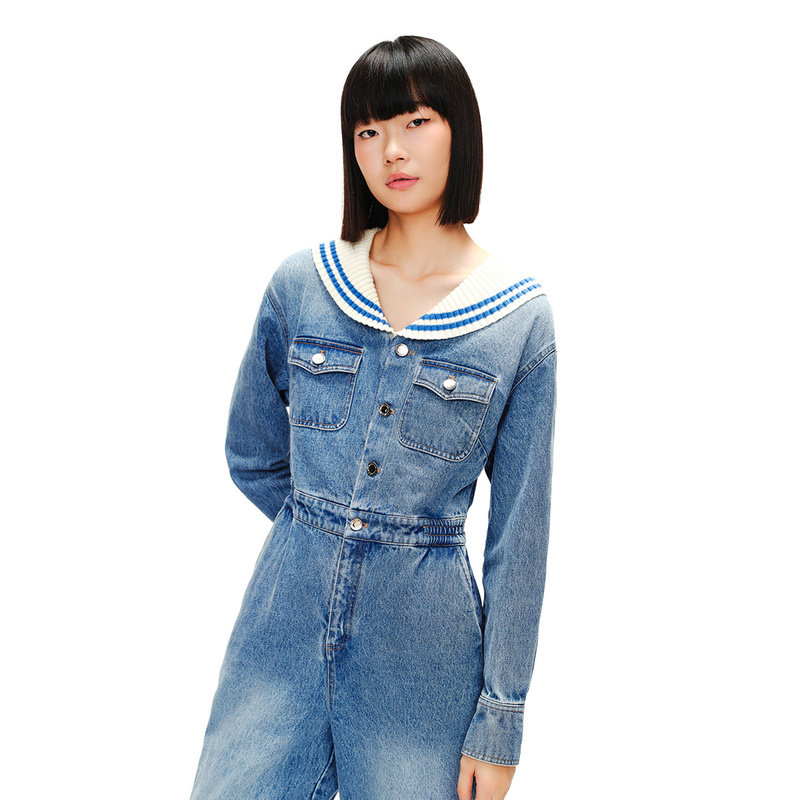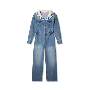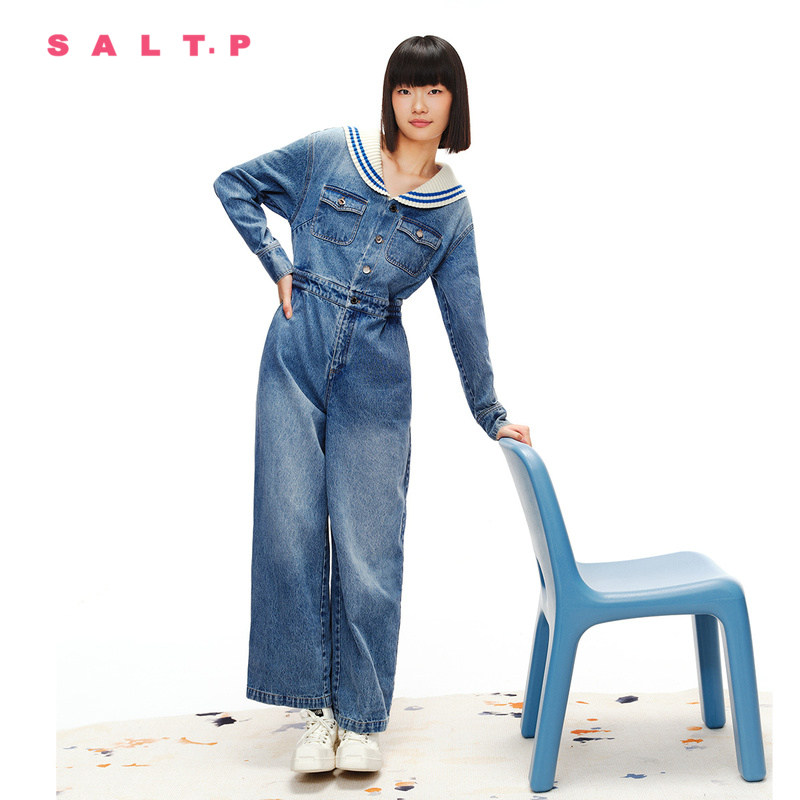 SALT.P可颜春航海水手领复古工装 丹宁牛仔连体裤