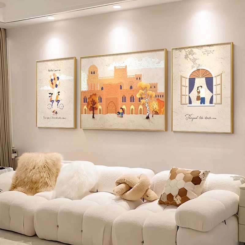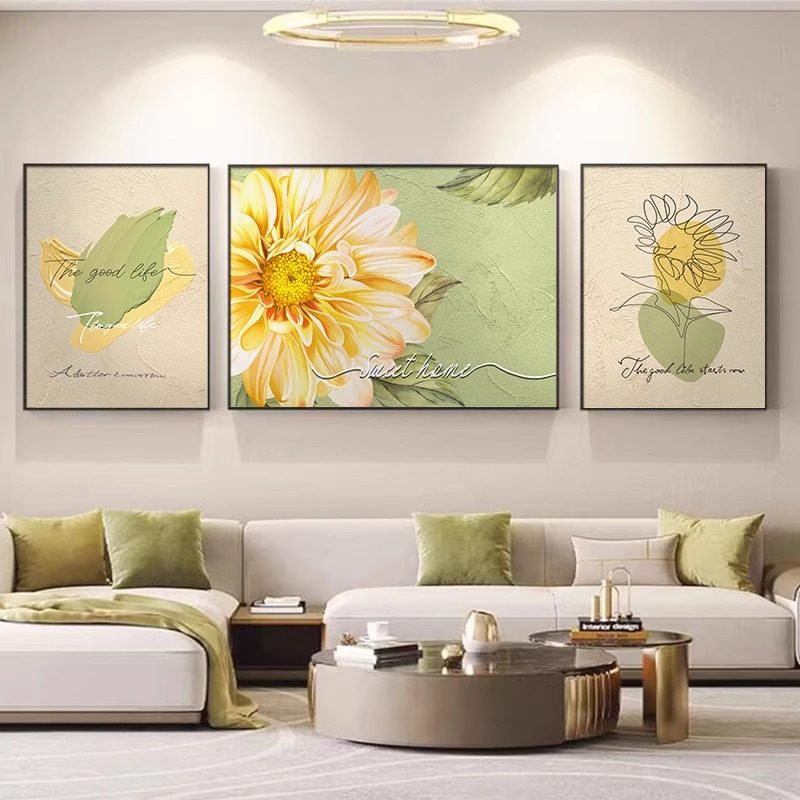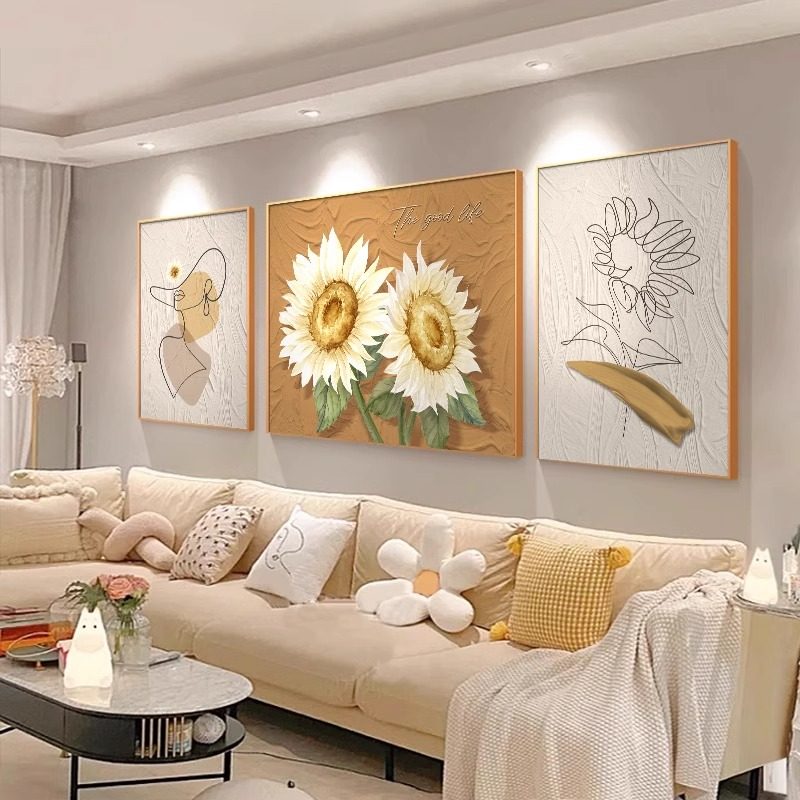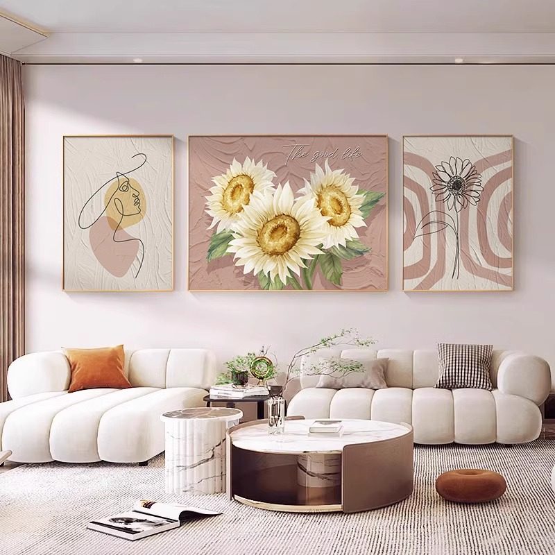 现代简约风景客厅装 饰画北欧沙发背景墙壁画肌理感小清新三联挂画