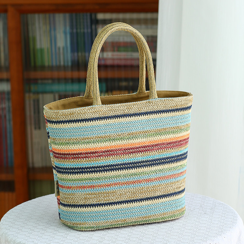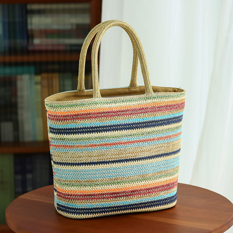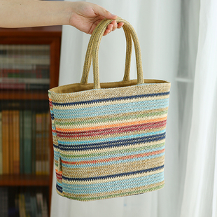 布奏彩色草编包度假风上班族洋气手提包小众高级感彩虹手拎包通勤