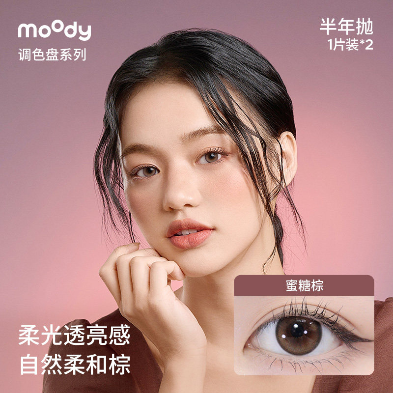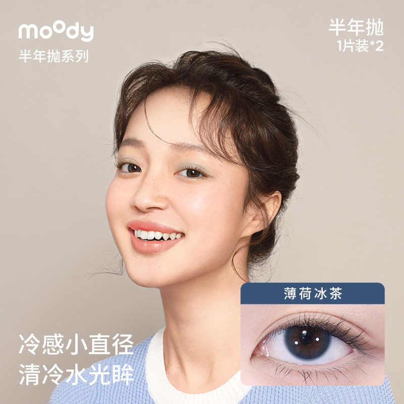 moody美瞳精选半年抛彩色隐形眼镜2片自然百搭大小直径官旗正品