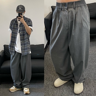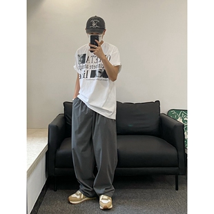 男女垂坠感黑色直筒休闲长裤 复古灰色阔腿宽松西裤 EVDY美式 SMDSK