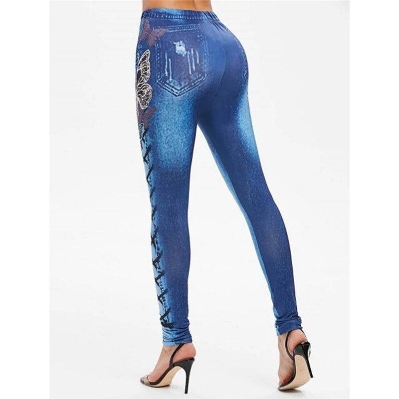 Print Leggings Butterfly Pencil Denim 极速Slim Faux Womgen